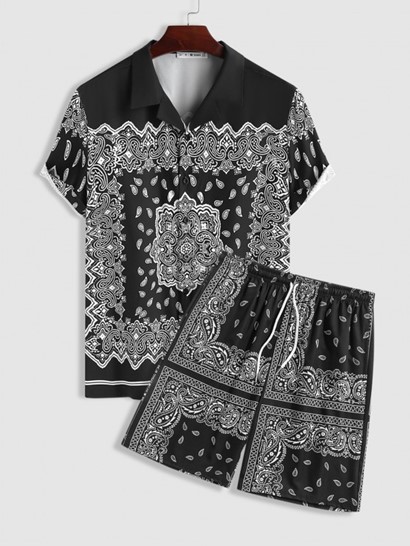 Be the first to review “Ethnic Style Paisley Printed Camp Collar Shirt With Drawstring Board Shorts Set”
