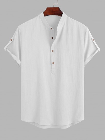 Be the first to review “Half Button Roll Up Sleeves Popover Shirt With Drawstring Shorts Two Piece Set”