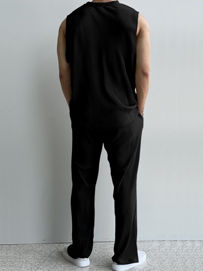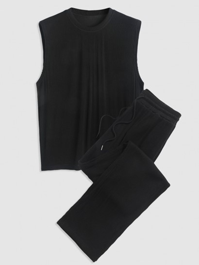 Men’s Casual Basic Two Piece Set Solid Color Crew Neck Ribbed Textured Plain Tank Top Sleeveless T Shirt Drawstring Pants Set