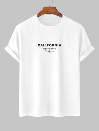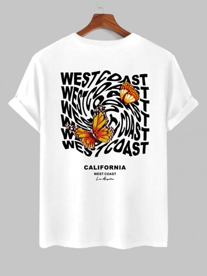 Men’s Casual WEST COAST Butterfly Pattern Short Sleeves T-shirt And Athleisure Style Letter CALIFORNIA Graphic Printed Drawstring Pockets Shorts Set