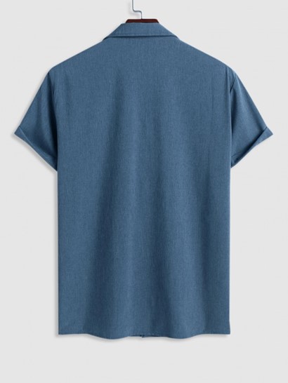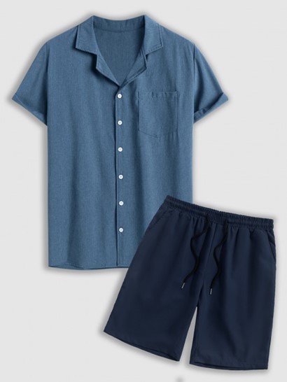 Men’s Lapel Collar Short Sleeves Front Pocket Design Button Up Casual Shirt And Basic Casual Shorts Set