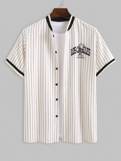 Be the first to review “Men’s Vertical Stripes LOS ANGELES Letter Coconut Tree Pattern Short Sleeves Button Front Baseball Shirt And Drawstring Board Shorts Vacation Hawaiian Beach Set”