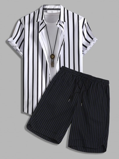 Be the first to review “Striped Short Sleeves Shirt And Drawstring Shorts Set”